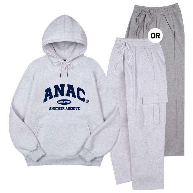 [SET]컬리지 스탠다드 후드+2타입 와이드 팬츠 셋업